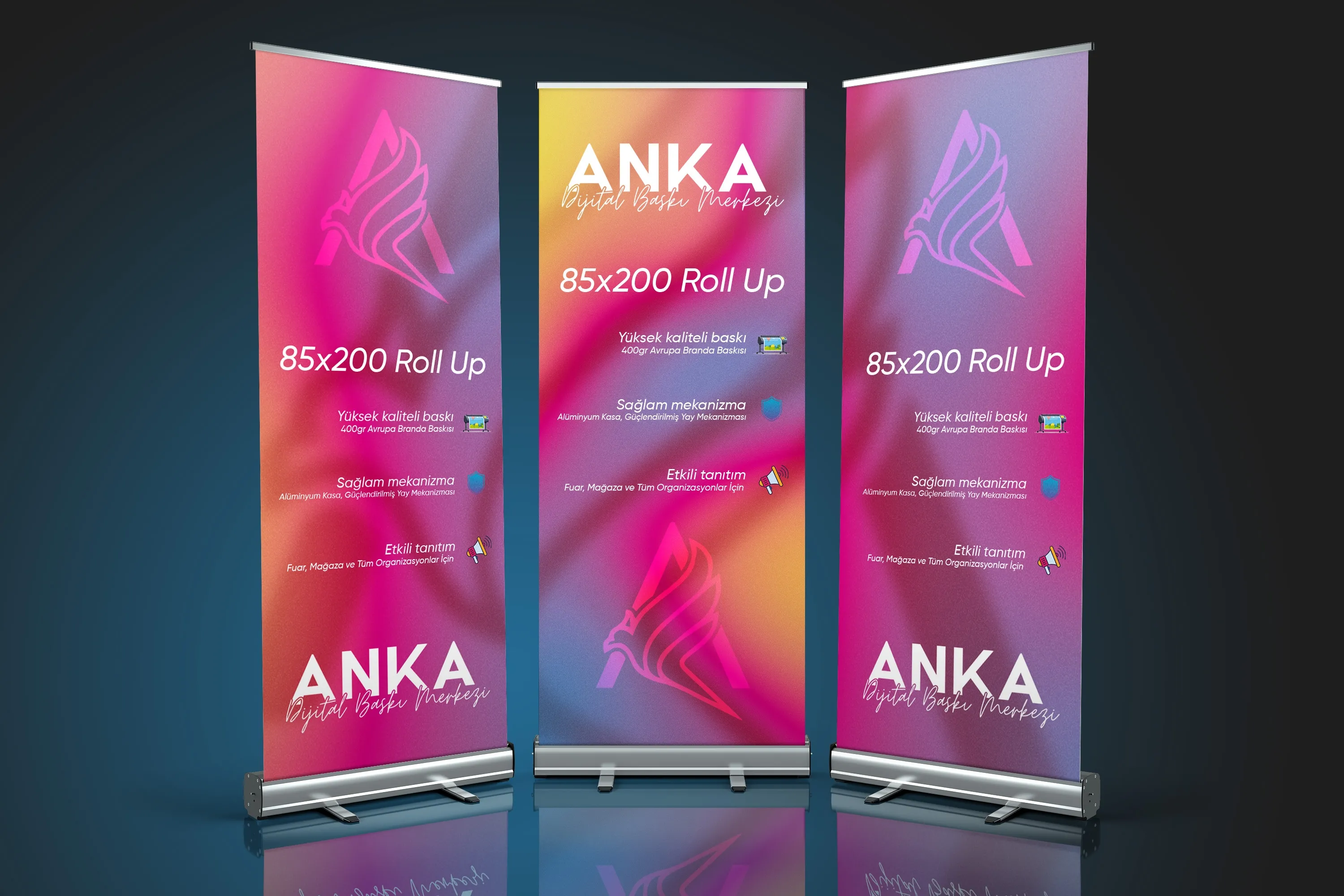 Roll up banner, fuarlar, etkinlikler, mağazalar, ofisler ve tanıtım alanlarında markanızı etkili bir şekilde sergilemenin en pratik ve şık yollarından biridir.